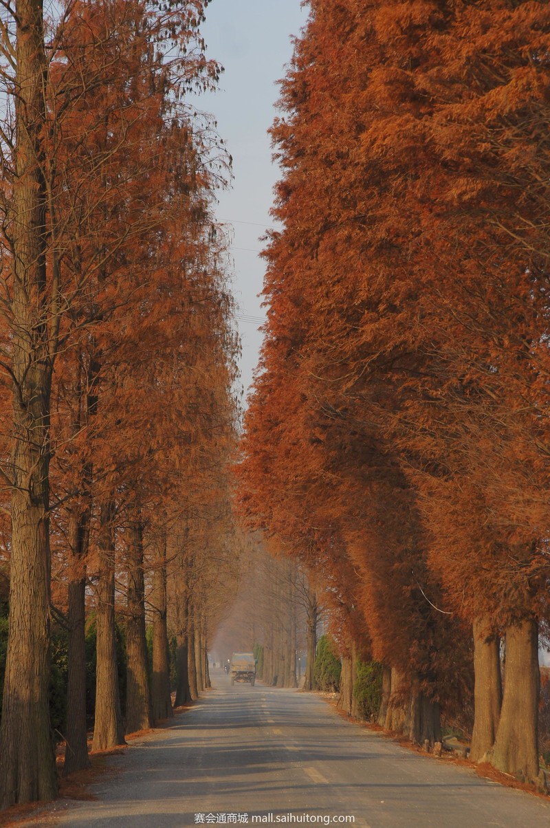 水库钱的主干道,水杉树已经通红了,有木有很美