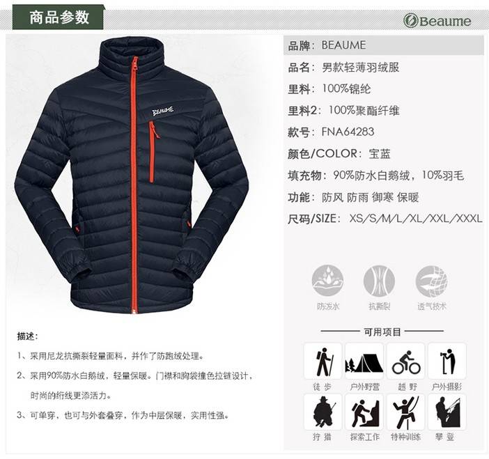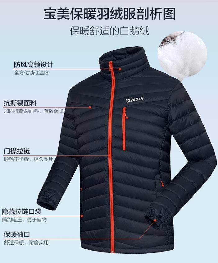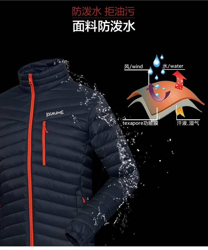 Beaume北客宝美户外超轻薄户外鹅绒轻便防风羽绒服男外套