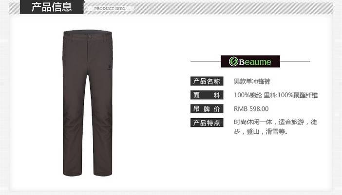 Beaume 北客户外男士冲锋裤单层透气防水速干裤