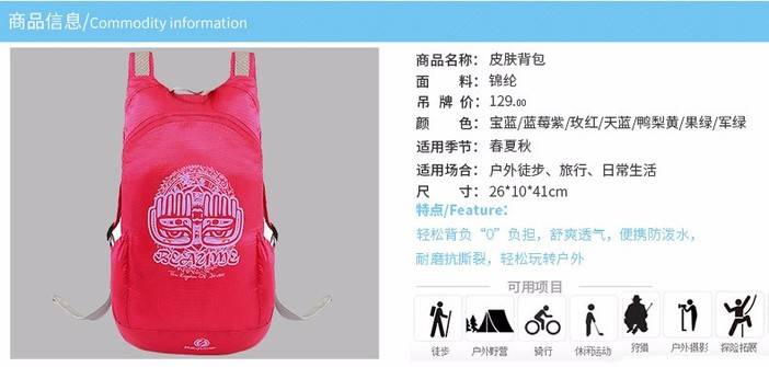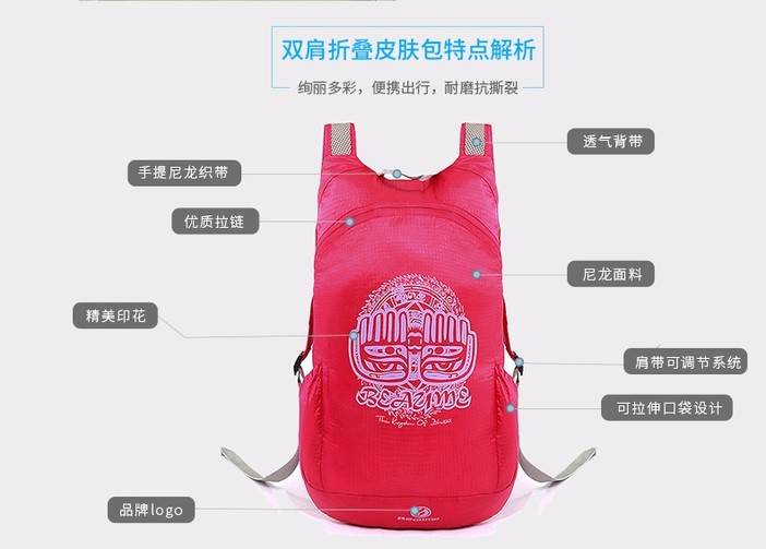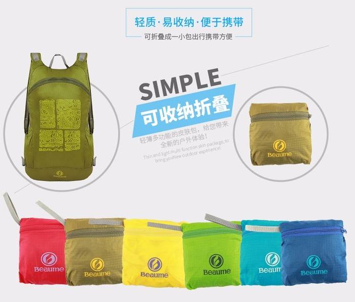 户外登山双肩包宝美beaume皮肤包男女旅行休闲包14L可折叠双肩包