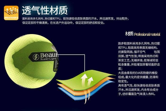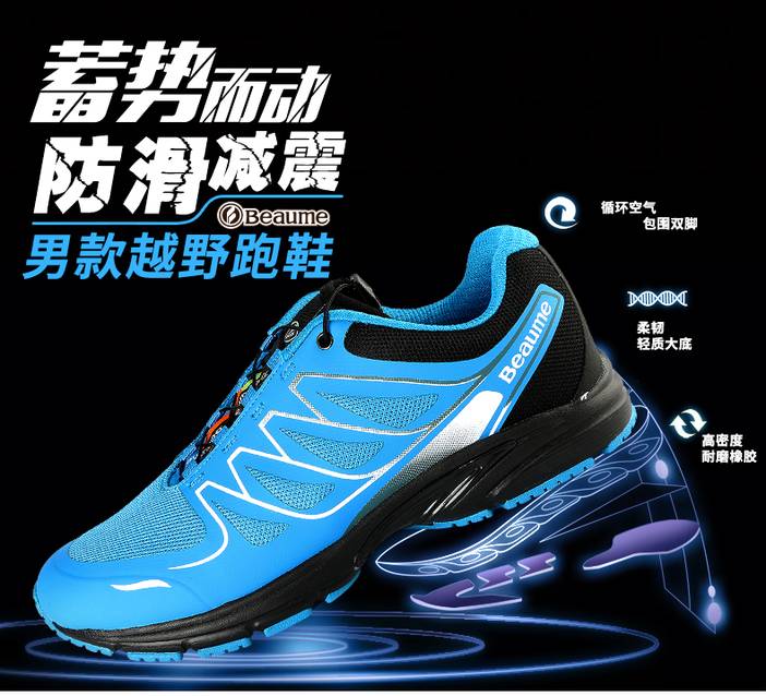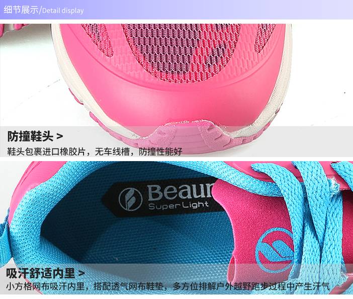 宝美beaume 户外越野跑鞋 舒适透气网面登山鞋防滑耐磨徒步鞋